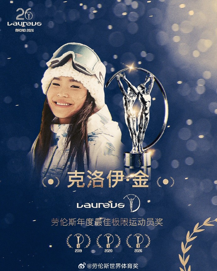4月21日消息 劳伦斯世界体育奖官方宣布,克洛伊·金荣获2026劳伦斯年度最佳极限运动员奖。