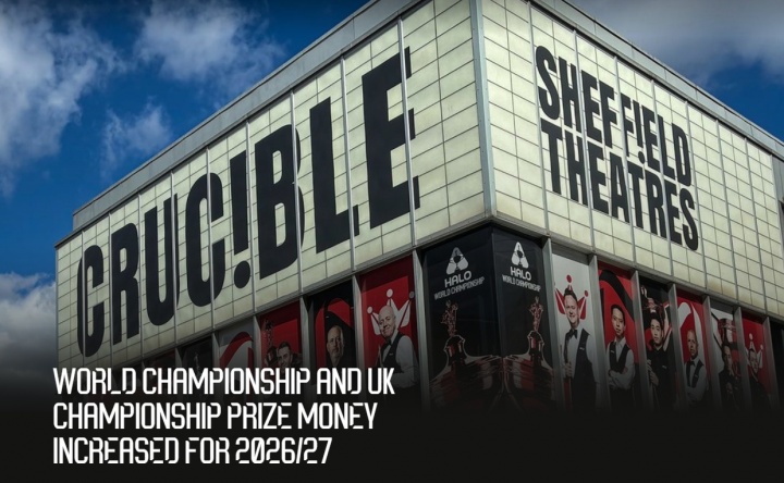 官方:2027斯诺克世锦赛冠军奖金62.5万镑!总奖金300万增长25%