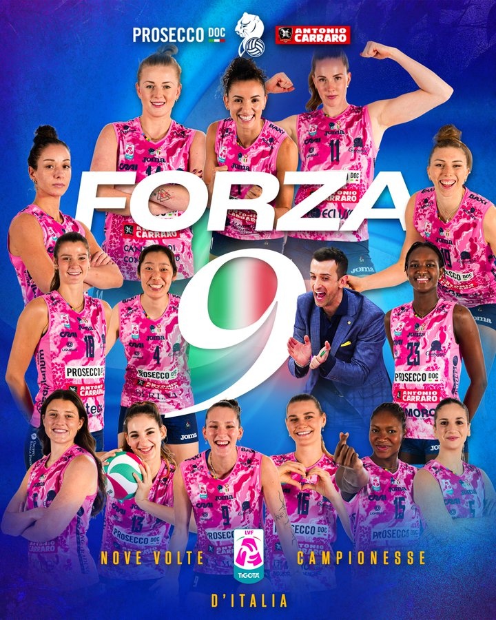 科内利亚诺3-0击败米兰,系列赛3-1胜出夺意甲冠军,朱婷随队夺冠