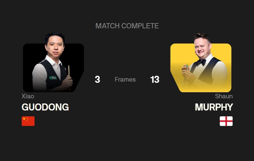 状态全无!肖国栋甚至没撑到比赛第3阶段,3-13惨败墨菲止步16强