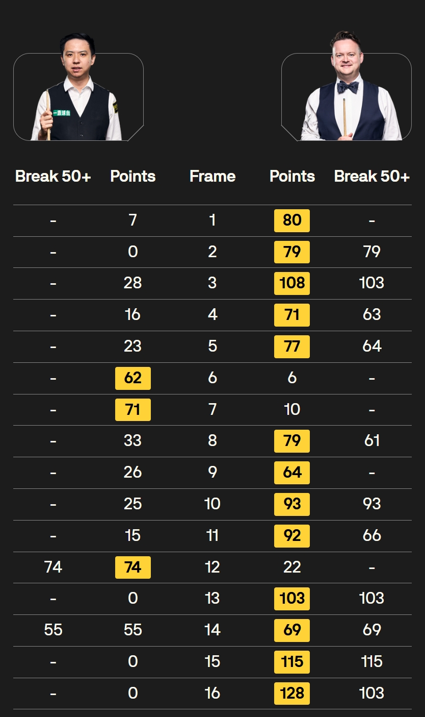 占比45%!斯诺克世锦赛首轮共打出31杆破百,中国选手打出14杆