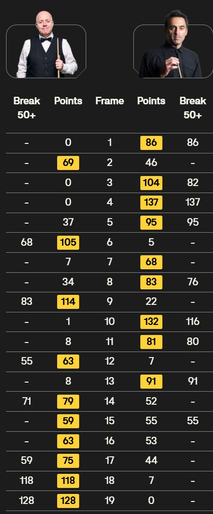 六连鞭!希金斯第三阶段开局连胜3局,总比分10-9反超奥沙利文