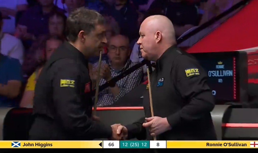 爽快!希金斯打进66分红球后,奥沙利文直接上来握手祝贺