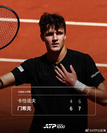 4月28日消息 马德里大师赛第三轮,门希克2-0卡恰诺夫晋级。