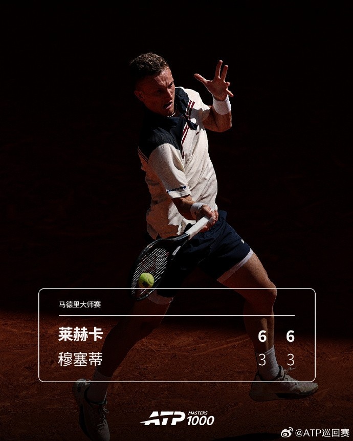 ATP1000马德里大师赛第四轮:11号种子莱赫卡2-0击败穆塞蒂